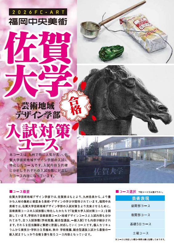 佐賀大学入試対策コースは、九州で特に人気が高い、佐賀大学芸術地域デザイン学部の入試に特化したコースです。
